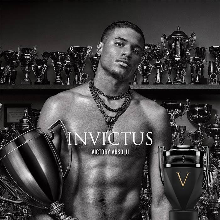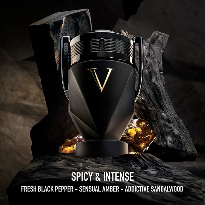Experience the ultimate victory with Invictus Victory Absolu Eau de Parfum Intense. This woody spicy ambery fragrance features fresh black pepper top notes, sensual amber heart notes, and addictive sandalwood base notes. Perfect for the confident and ambitious man. Available in 50ML or 100ML sizes.